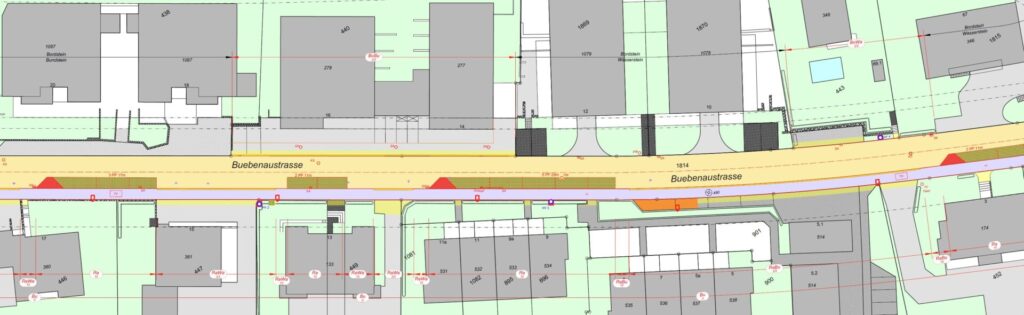 • Abstimmung der Bauprojektpläne mit den verschiedenen Werkeigentümern und der Gemeinde sowie dem EKZ für die Beleuchtung.