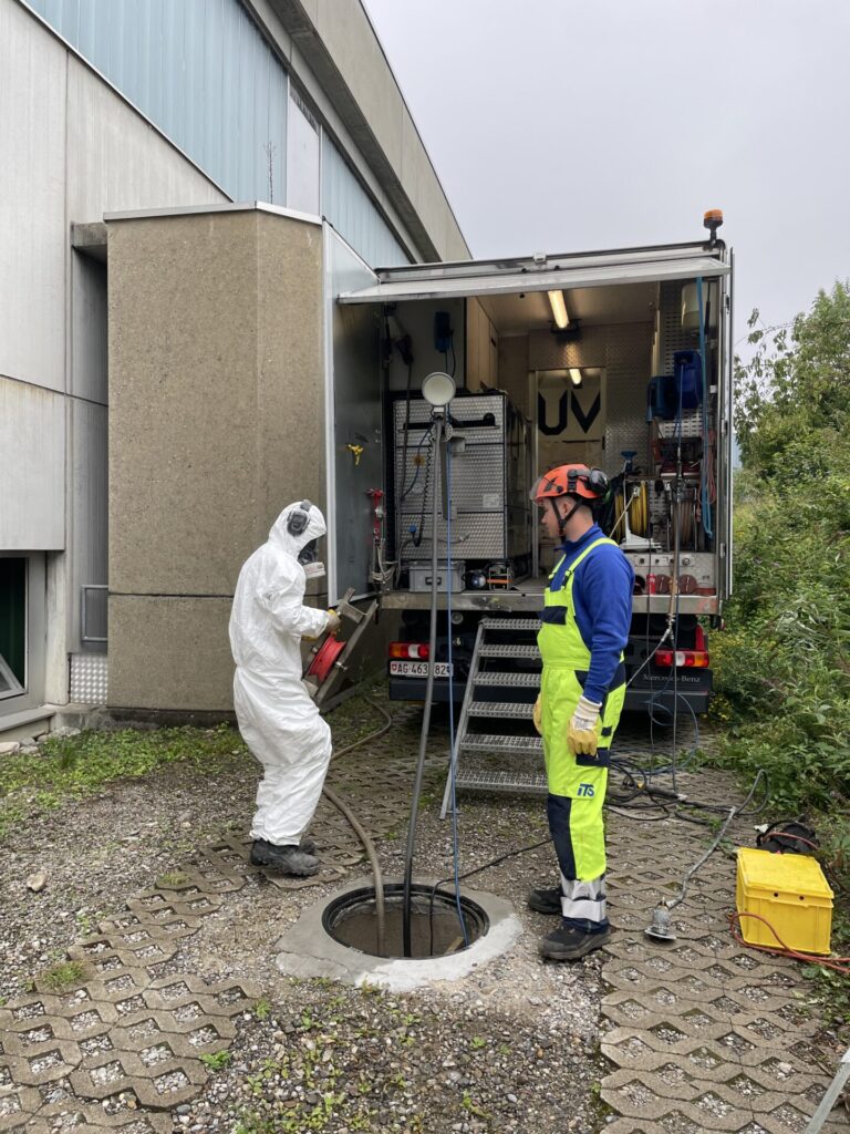 Aktuell renoviert die Firma ITS Kanalservice AG die alten Sickerleitungen hinter dem Verteilzentrum der Post im Bereich Urdorf Süd. Die Sickerleitungen befinden sich in einem schlechten Zustand und hätten ersetzt werden müssen. In Zusammenarbeit mir der Gemeinde wurde entschieden, die Sickerleitungen ausser Betrieb zu nehmen und die Haltungen in Regenabwasserleitungen, mit Inliner, umzuwandeln.